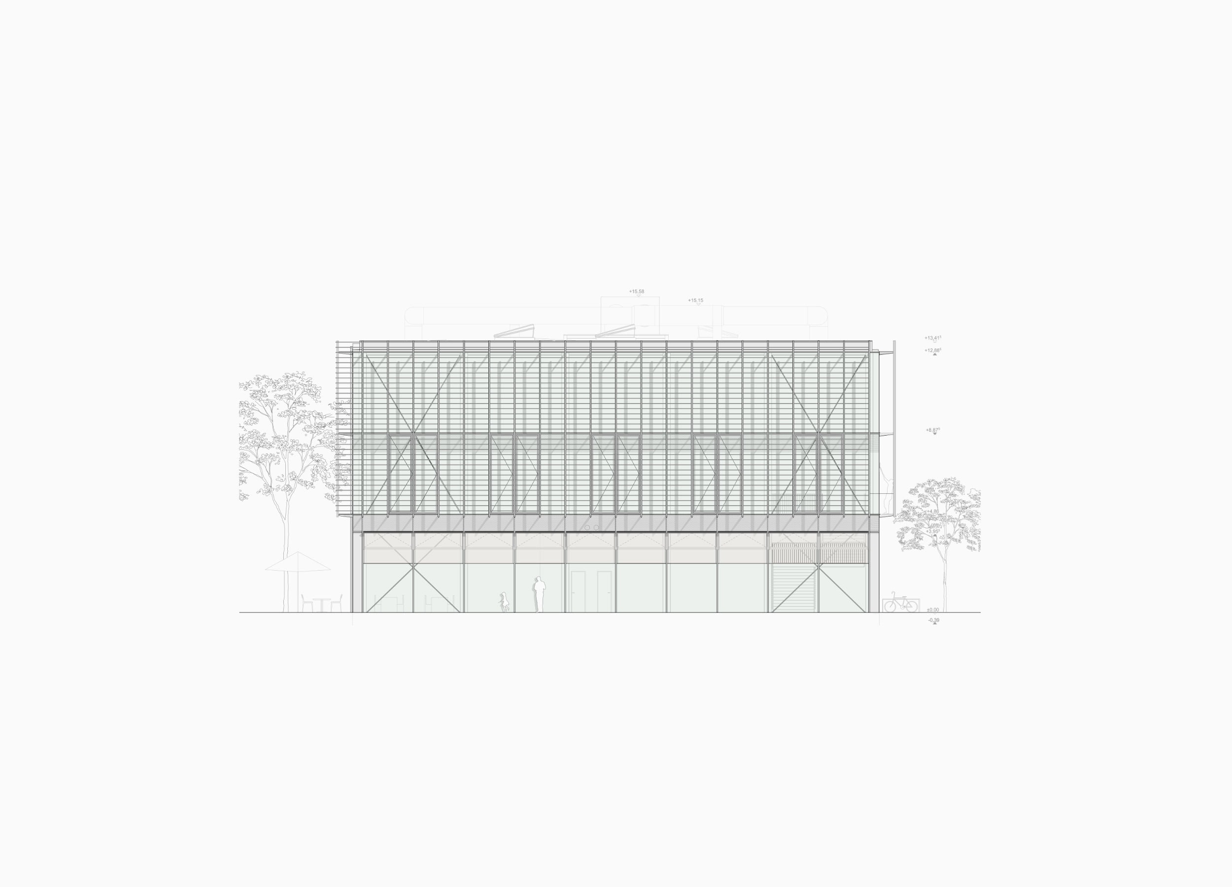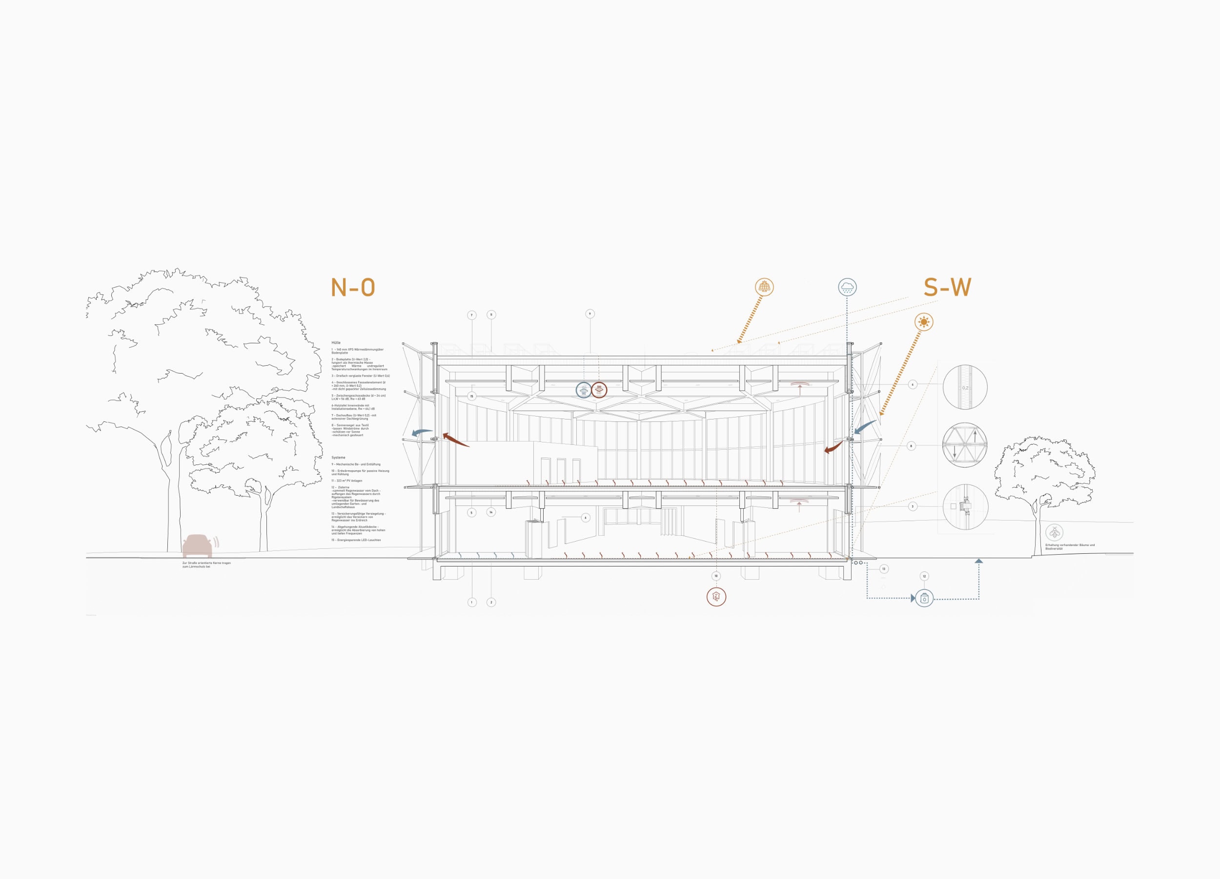Das Programm sieht einen zentralen Raum vor, der eine flexible Gestaltung des Grundrisses ermöglicht. Der offene, wenig determinierte Raum, bietet den Studierenden und Mitarbeitenden Platz, sich zu treffen und ihre Freizeit in kleineren Gruppen zu verbringen oder auch größere Veranstaltungen durchzuführen. Weitere Nutzungen, wie studentische Arbeitsräume und kleinere, in sich abgeschlossene Veranstaltungsräume sind strategisch in das Funktionsprogramm eingebettet und sollten über das gesamte Gebäude sinnvoll verteilt werden.