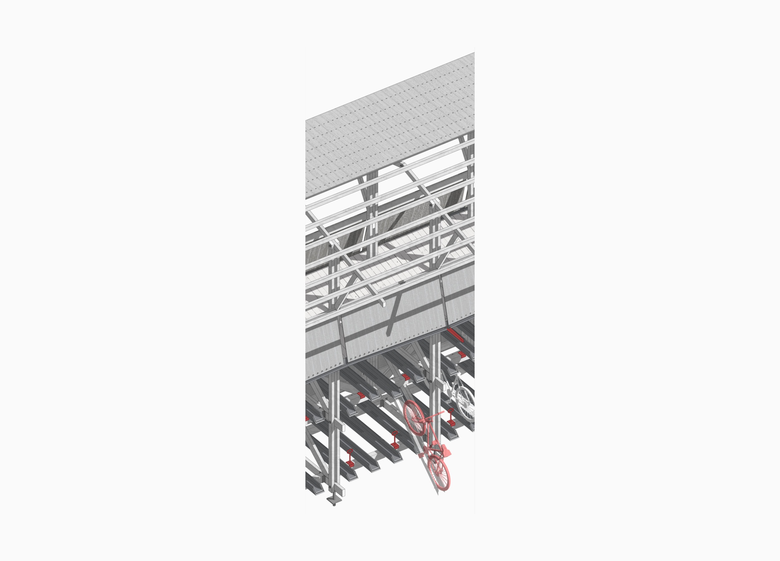 Aufgabe ist der Entwurf einer intelligent einfachen Struktur als Unterstand für 200 Fahrräder. Die Struktur soll dabei konzeptabhängig eine weitere untergeordnete, sinnvoll gewählte Funktion übernehmen (z.B. Aufenthalt, Sammeln von Energie für E-Fahrräder, Sammeln von Wasser) und die dafür nötigen Elemente integrieren. Der Unterstand soll sortenrein demontierbar sein und mit geringen Eingriffen in die umgebende Landschaft auskommen. Durch Reihung der Stellplätze entsteht eine großmaßstäbliche Struktur, die einen Dialog mit der umgebenen Landschaft eingehen kann. Sie kann begrenzen, umschließen, begleiten…