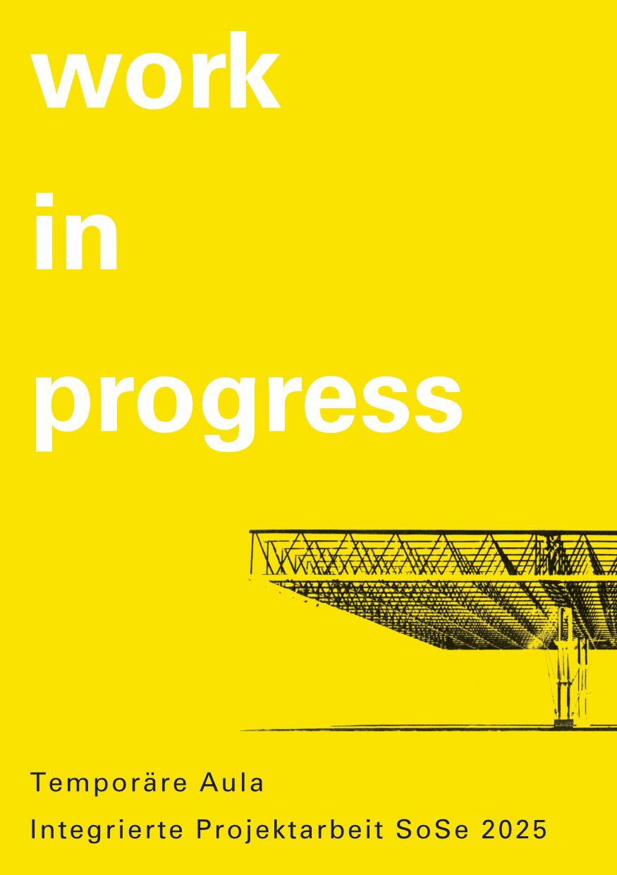 Die jährliche Ausstellung „work in progress“ zur Integrierten Projektarbeit findet im Zeitraum vom 13.-23.04.26 wieder im Foyer des Reiff-Museums statt. Präsentiert werden Projektarbeiten von herausragender Qualität aus dem Sommersemester 2025. Aufgabe war der Entwurf einer temporären Aula für die Universität Bonn.