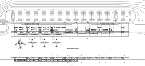 Hintergrund des selbstgewählten Themas ist der Neubau des Regionalflughafenterminals für die Insel Paros in Griechenland, passend zur kürzlich realisierten Start und Landebahn 1400x25m. Parallel zur Start und Landebahn und parallel zum ansteigenden Gelände zwischen Land und Küste wird das Terminal unter einem langen blickoffenen Dach organisiert und zeichnet sich wie ein Strich in der Landschaft ab. Konstruktiv besteht das Terminalgebäude aus einer Kombination aus vorgefertigten Stahlbetonelementen